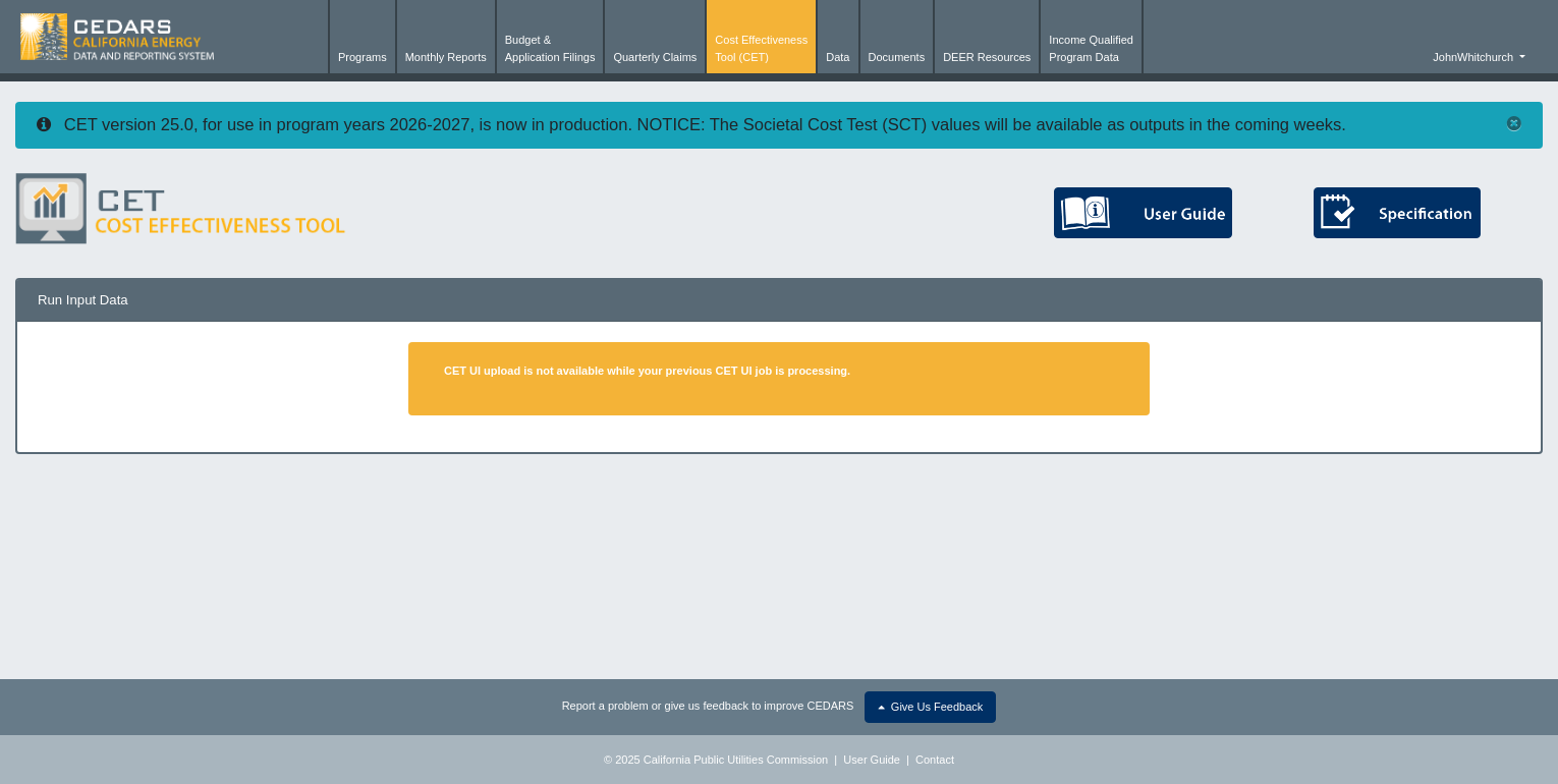The CET page is empty except for the following error message: