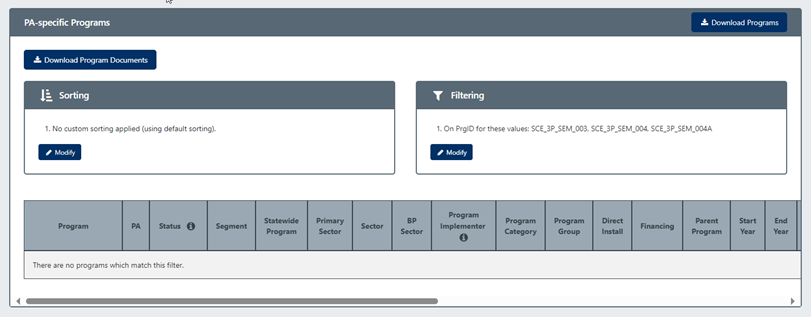 SCE added 4 new program IDs that were not included in their original budget filing because additional contracts were signed. They added the program and IP, and can filter on the PA Specific Program tab and see the programs. However, when looking at it with a “Community” log in, the programs don’t show up when filtered on. They are unsure if it has to do with the fact that since these weren’t included in the budget filing they are listed on the “Programs not in this Budget Filing”.