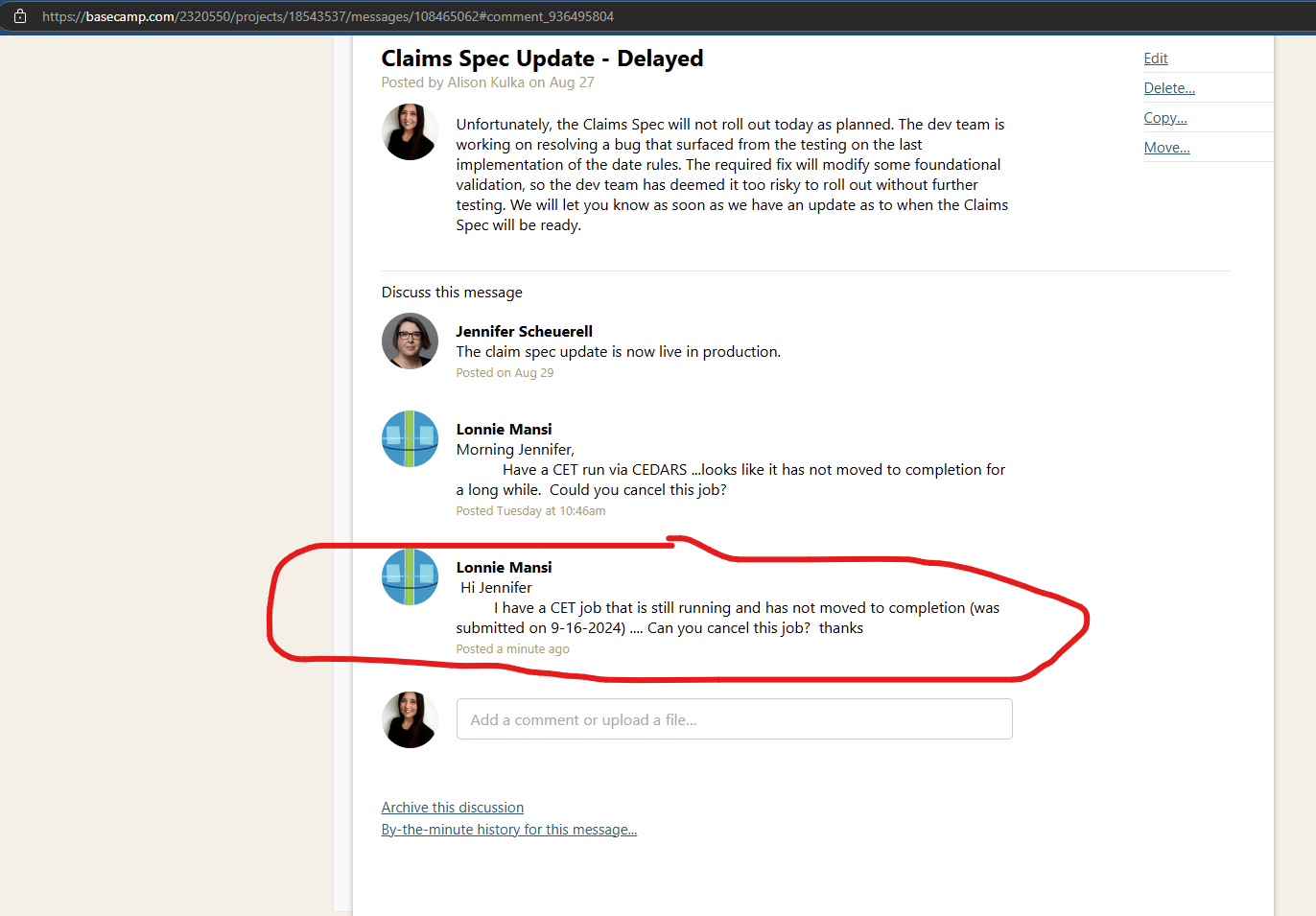 Per Loni Mansi’s Basecamp post, he submitted a CET job on 9/16/24 but it is stuck. He is requesting that the CET run be cancelled.